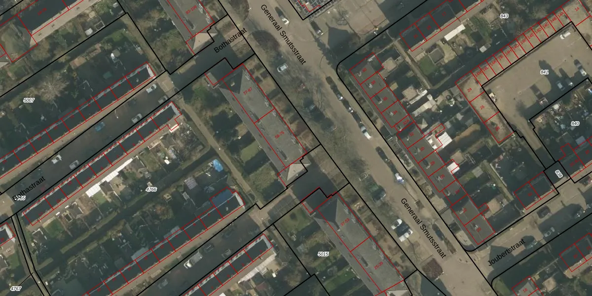 Het perceel waarop Generaal Smutsstraat 59 staat heeft een oppervlakte van 4700 m². Dit is een zeer groot perceel. De perceeloppervlakte wordt geregistreerd door het Kadaster. Gedetailleerde informatie over de maten van dit perceel kunt u vinden in het rapport Kadastrale kaart met maatvoering van Generaal Smutsstraat 59.