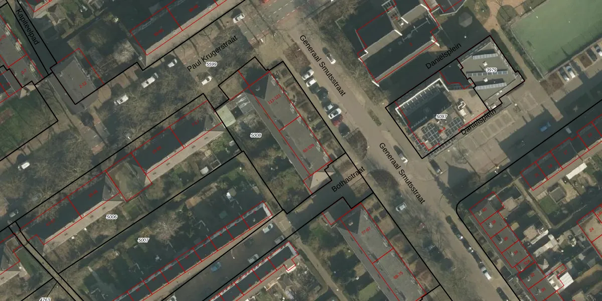 Het perceel waarop Generaal Smutsstraat 95 staat heeft een oppervlakte van 1225 m². Dit is een zeer groot perceel. De perceeloppervlakte wordt geregistreerd door het Kadaster. Gedetailleerde informatie over de maten van dit perceel kunt u vinden in het rapport Kadastrale kaart met maatvoering van Generaal Smutsstraat 95.