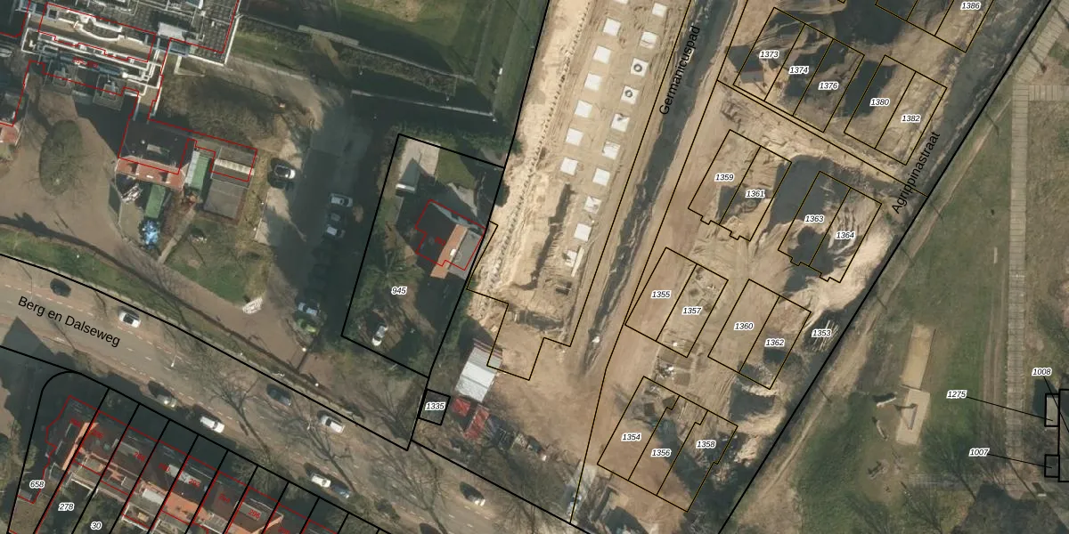 Het perceel waarop Germanicuspad 35 staat heeft een oppervlakte van 3168 m². Dit is een zeer groot perceel. De perceeloppervlakte wordt geregistreerd door het Kadaster. Gedetailleerde informatie over de maten van dit perceel kunt u vinden in het rapport Kadastrale kaart met maatvoering van Germanicuspad 35.