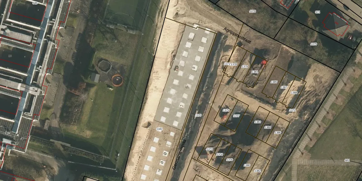 Het perceel waarop Germanicuspad 79 staat heeft een oppervlakte van 3168 m². Dit is een zeer groot perceel. De perceeloppervlakte wordt geregistreerd door het Kadaster. Gedetailleerde informatie over de maten van dit perceel kunt u vinden in het rapport Kadastrale kaart met maatvoering van Germanicuspad 79.