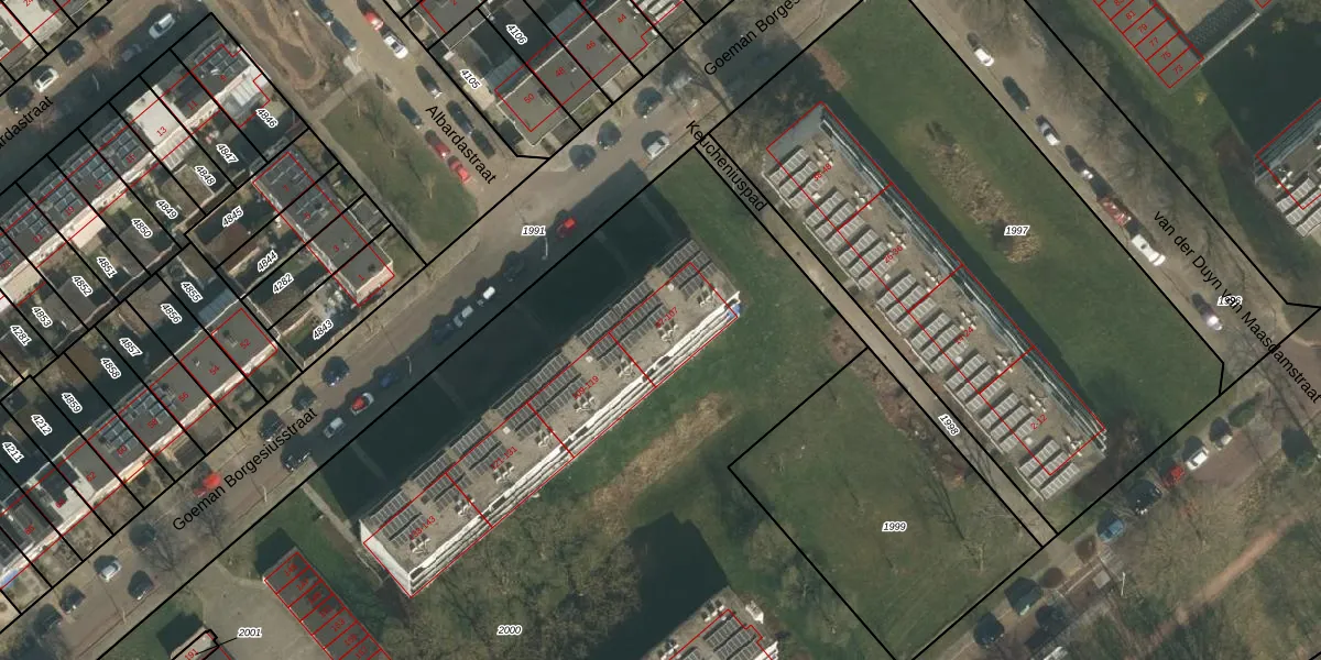 Goeman Borgesiusstraat 101 is gelegen op kadastraal perceel HTT02D2000. Deze kadastrale aanduiding is uniek en wordt gebruikt door het Kadaster om eigendomsrechten en andere zakelijke rechten vast te leggen. Het perceel maakt onderdeel uit van de kadastrale gemeente Hatert.