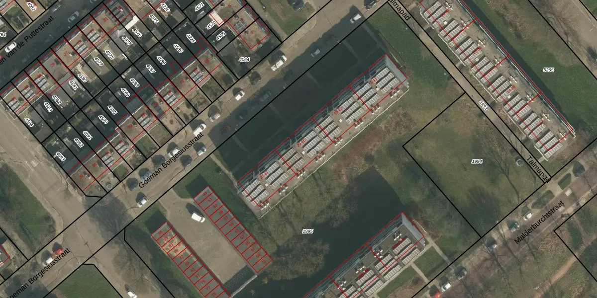 Het perceel waarop Goeman Borgesiusstraat 29 staat heeft een oppervlakte van 8445 m². Dit is een zeer groot perceel. De perceeloppervlakte wordt geregistreerd door het Kadaster. Gedetailleerde informatie over de maten van dit perceel kunt u vinden in het rapport Kadastrale kaart met maatvoering van Goeman Borgesiusstraat 29.