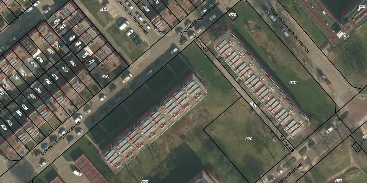 Het perceel waarop Goeman Borgesiusstraat 5 staat heeft een oppervlakte van 8445 m². Dit is een zeer groot perceel. De perceeloppervlakte wordt geregistreerd door het Kadaster. Gedetailleerde informatie over de maten van dit perceel kunt u vinden in het rapport Kadastrale kaart met maatvoering van Goeman Borgesiusstraat 5.