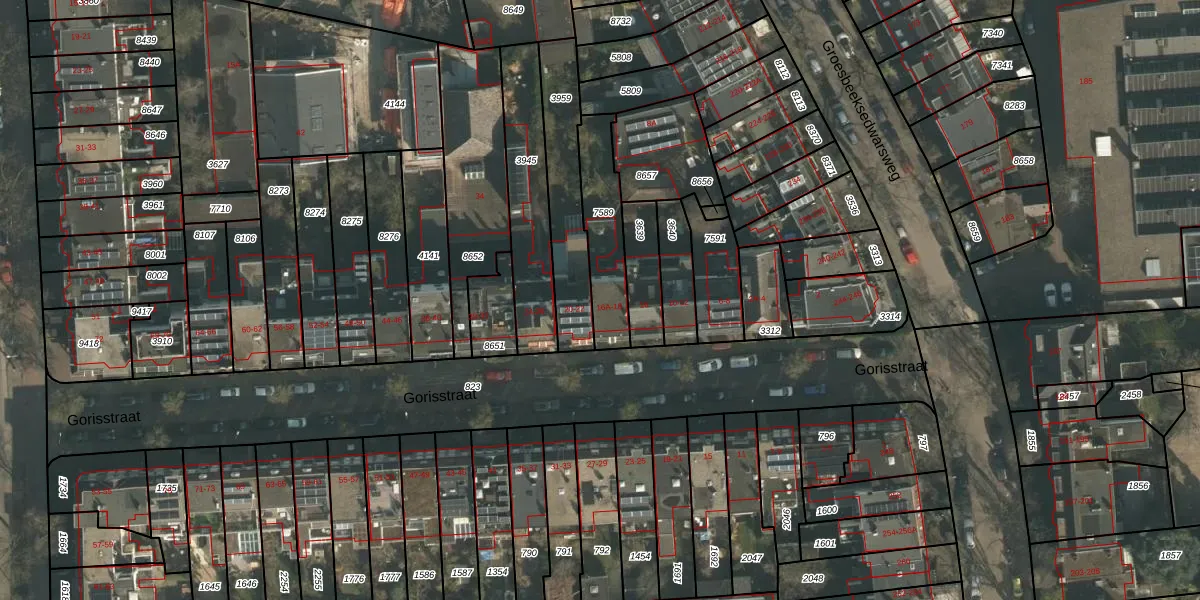 Het perceel waarop Gorisstraat 16-A staat heeft een oppervlakte van 235 m². Dit is een middelgroot perceel. De perceeloppervlakte wordt geregistreerd door het Kadaster. Gedetailleerde informatie over de maten van dit perceel kunt u vinden in het rapport Kadastrale kaart met maatvoering van Gorisstraat 16-A.