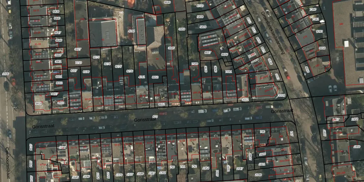Gorisstraat 22 is gelegen op kadastraal perceel HTT02A3959. Deze kadastrale aanduiding is uniek en wordt gebruikt door het Kadaster om eigendomsrechten en andere zakelijke rechten vast te leggen. Het perceel maakt onderdeel uit van de kadastrale gemeente Hatert.
