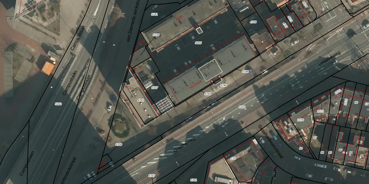 Graafseweg 104-A-2 is gelegen op kadastraal perceel NMG00B5655. Deze kadastrale aanduiding is uniek en wordt gebruikt door het Kadaster om eigendomsrechten en andere zakelijke rechten vast te leggen. Het perceel maakt onderdeel uit van de kadastrale gemeente Nijmegen.