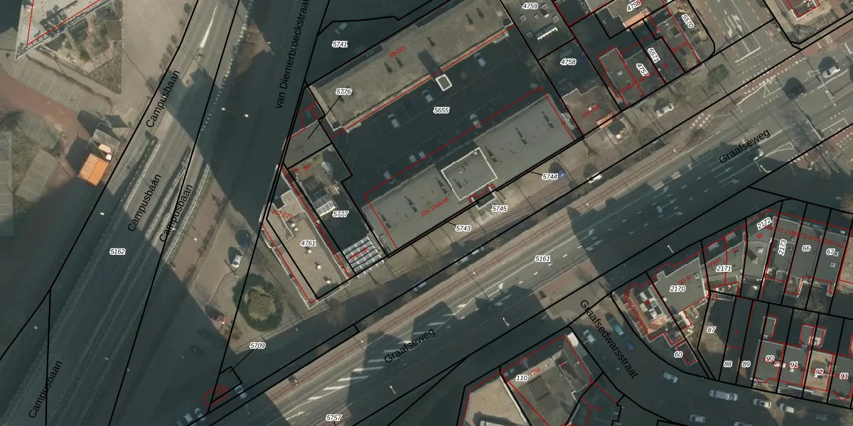 Graafseweg 104-A-16 is gelegen op kadastraal perceel NMG00B5655. Deze kadastrale aanduiding is uniek en wordt gebruikt door het Kadaster om eigendomsrechten en andere zakelijke rechten vast te leggen. Het perceel maakt onderdeel uit van de kadastrale gemeente Nijmegen.