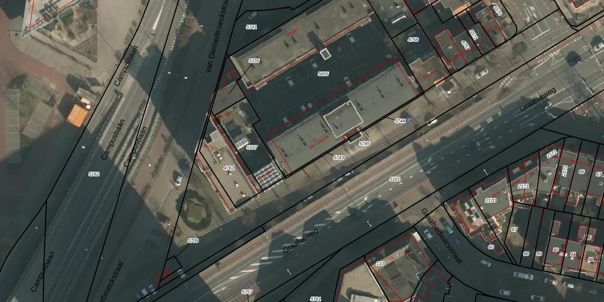 Graafseweg 104-A-40 is gelegen op kadastraal perceel NMG00B5655. Deze kadastrale aanduiding is uniek en wordt gebruikt door het Kadaster om eigendomsrechten en andere zakelijke rechten vast te leggen. Het perceel maakt onderdeel uit van de kadastrale gemeente Nijmegen.