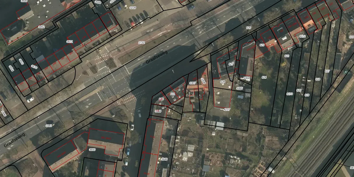 Graafseweg 155 is gelegen op kadastraal perceel HTT02M631. Deze kadastrale aanduiding is uniek en wordt gebruikt door het Kadaster om eigendomsrechten en andere zakelijke rechten vast te leggen. Het perceel maakt onderdeel uit van de kadastrale gemeente Hatert.