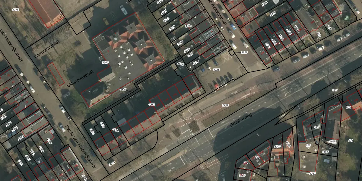 Graafseweg 174 is gelegen op kadastraal perceel NBH00I3571. Deze kadastrale aanduiding is uniek en wordt gebruikt door het Kadaster om eigendomsrechten en andere zakelijke rechten vast te leggen. Het perceel maakt onderdeel uit van de kadastrale gemeente Neerbosch.