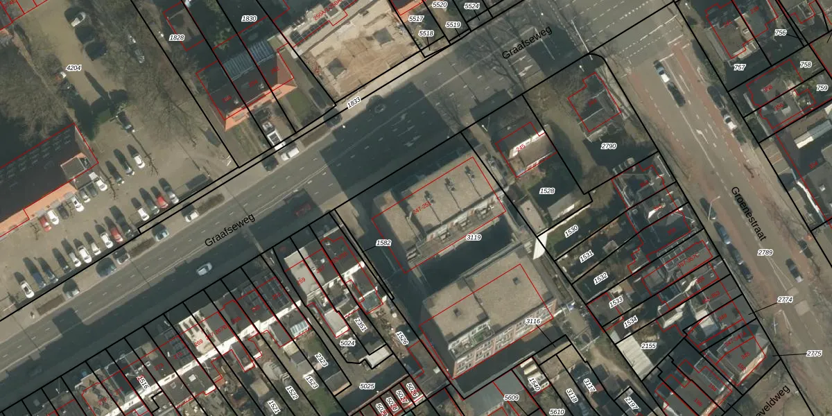 Graafseweg 247-T is gelegen op kadastraal perceel HTT02M3119. Deze kadastrale aanduiding is uniek en wordt gebruikt door het Kadaster om eigendomsrechten en andere zakelijke rechten vast te leggen. Het perceel maakt onderdeel uit van de kadastrale gemeente Hatert.