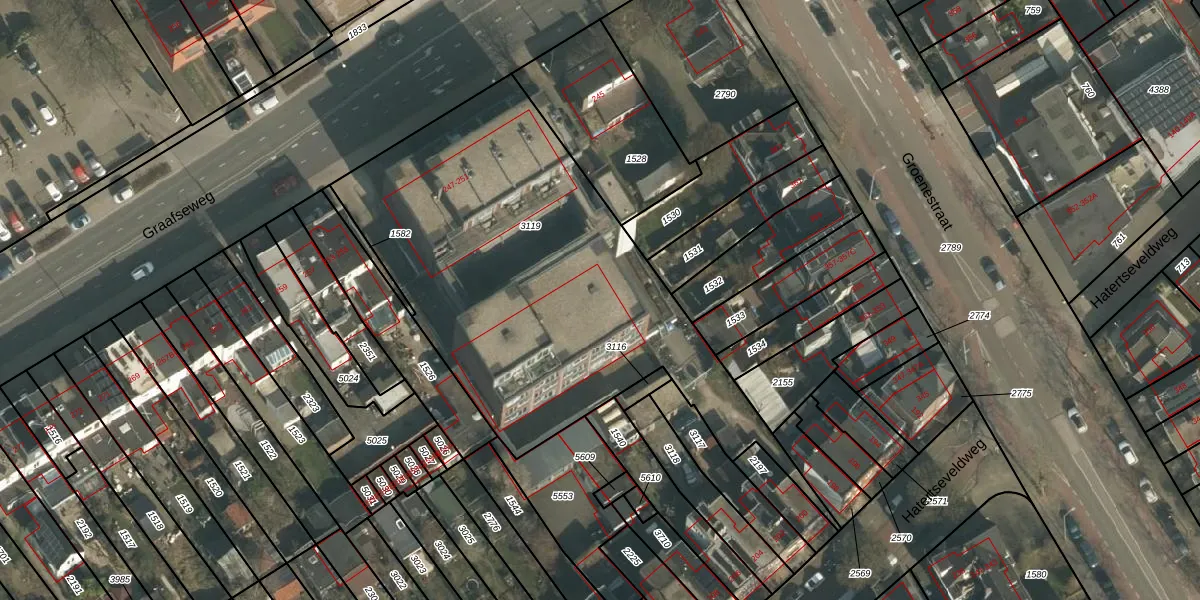 Graafseweg 249-E is gelegen op kadastraal perceel HTT02M3119. Deze kadastrale aanduiding is uniek en wordt gebruikt door het Kadaster om eigendomsrechten en andere zakelijke rechten vast te leggen. Het perceel maakt onderdeel uit van de kadastrale gemeente Hatert.