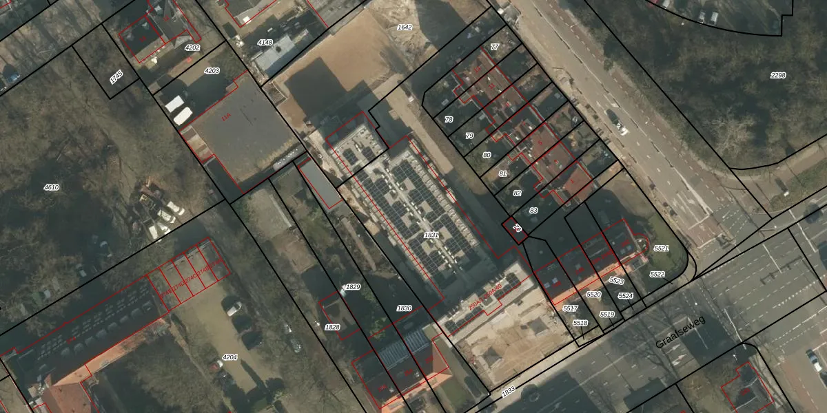 Het perceel waarop Graafseweg 250-A-18 staat heeft een oppervlakte van 2055 m². Dit is een zeer groot perceel. De perceeloppervlakte wordt geregistreerd door het Kadaster. Gedetailleerde informatie over de maten van dit perceel kunt u vinden in het rapport Kadastrale kaart met maatvoering van Graafseweg 250-A-18.