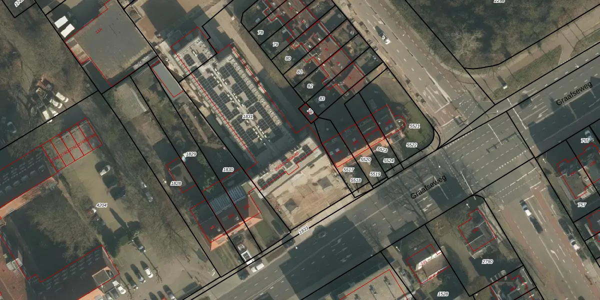 Het perceel waarop Graafseweg 250-A-24 staat heeft een oppervlakte van 2055 m². Dit is een zeer groot perceel. De perceeloppervlakte wordt geregistreerd door het Kadaster. Gedetailleerde informatie over de maten van dit perceel kunt u vinden in het rapport Kadastrale kaart met maatvoering van Graafseweg 250-A-24.