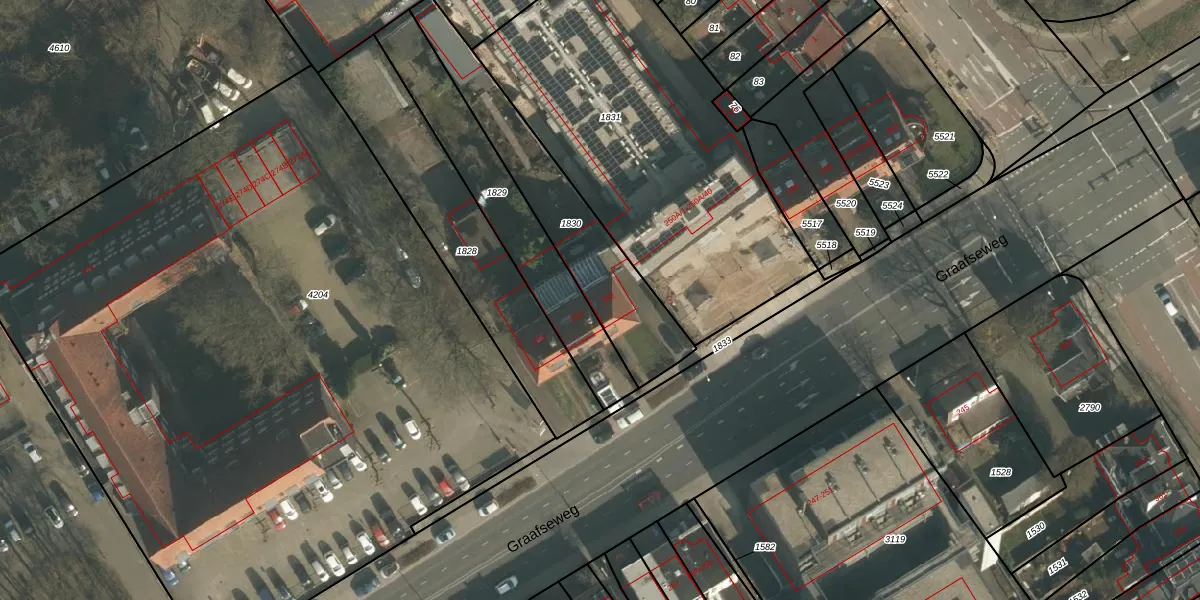Het perceel waarop Graafseweg 252 staat heeft een oppervlakte van 570 m². Dit is een groot perceel. De perceeloppervlakte wordt geregistreerd door het Kadaster. Gedetailleerde informatie over de maten van dit perceel kunt u vinden in het rapport Kadastrale kaart met maatvoering van Graafseweg 252.