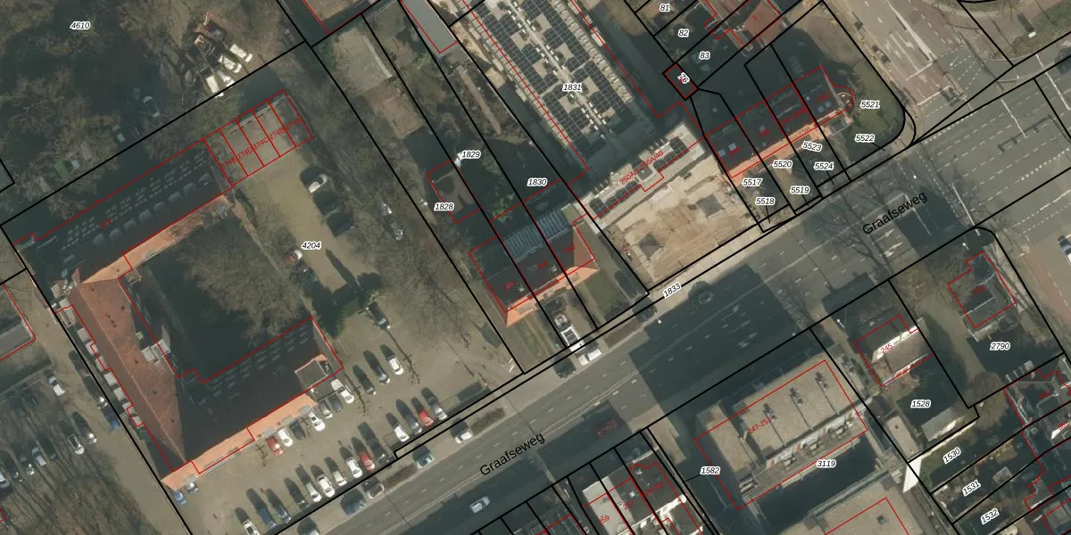 Het perceel waarop Graafseweg 254 staat heeft een oppervlakte van 525 m². Dit is een groot perceel. De perceeloppervlakte wordt geregistreerd door het Kadaster. Gedetailleerde informatie over de maten van dit perceel kunt u vinden in het rapport Kadastrale kaart met maatvoering van Graafseweg 254.