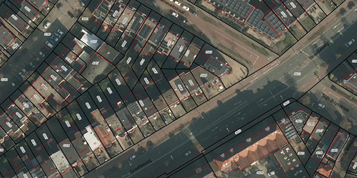Het perceel waarop Graafseweg 30 staat heeft een oppervlakte van 182 m². Dit is een middelgroot perceel. De perceeloppervlakte wordt geregistreerd door het Kadaster. Gedetailleerde informatie over de maten van dit perceel kunt u vinden in het rapport Kadastrale kaart met maatvoering van Graafseweg 30.