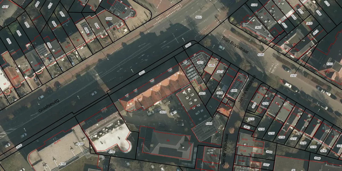 Het perceel waarop Graafseweg 33-A-8 staat heeft een oppervlakte van 2410 m². Dit is een zeer groot perceel. De perceeloppervlakte wordt geregistreerd door het Kadaster. Gedetailleerde informatie over de maten van dit perceel kunt u vinden in het rapport Kadastrale kaart met maatvoering van Graafseweg 33-A-8.