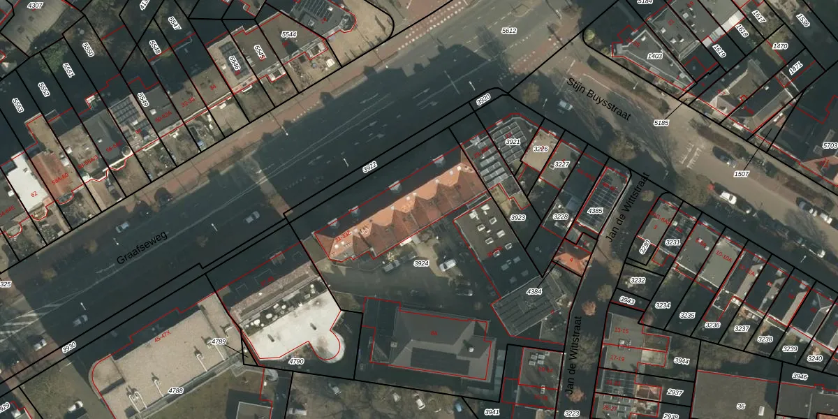 Het perceel waarop Graafseweg 33-A-9 staat heeft een oppervlakte van 2410 m². Dit is een zeer groot perceel. De perceeloppervlakte wordt geregistreerd door het Kadaster. Gedetailleerde informatie over de maten van dit perceel kunt u vinden in het rapport Kadastrale kaart met maatvoering van Graafseweg 33-A-9.