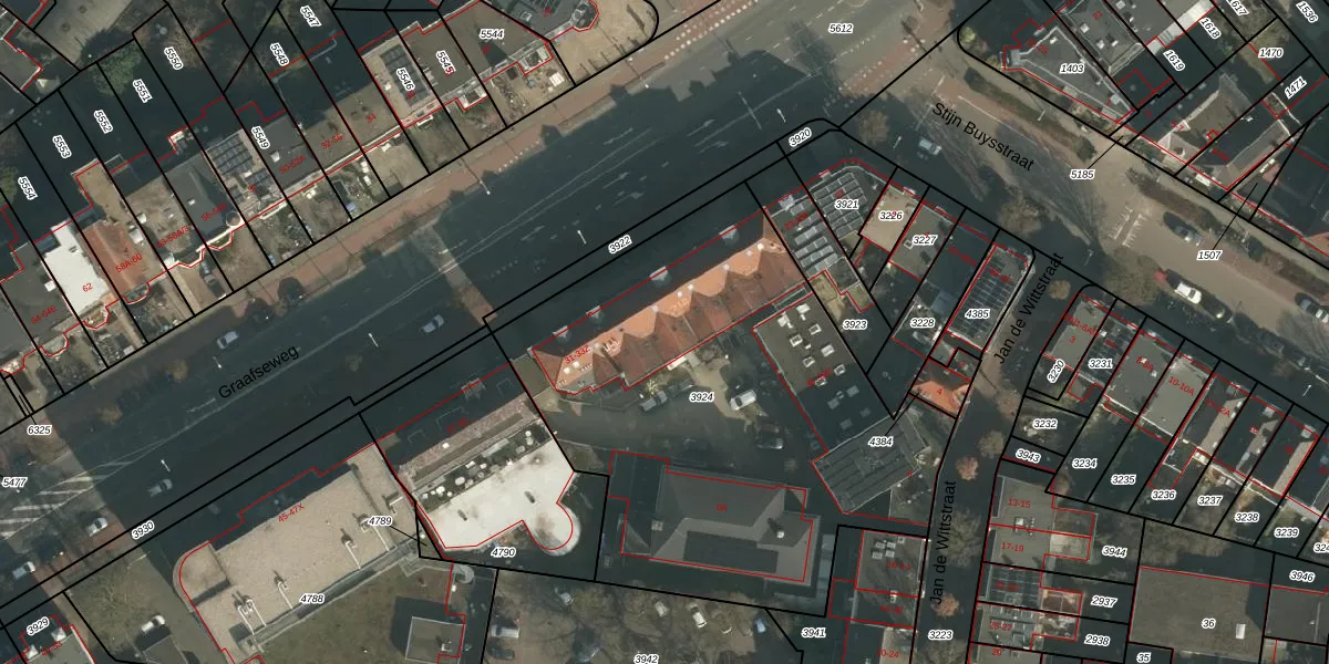 Het perceel waarop Graafseweg 33-A-10 staat heeft een oppervlakte van 2410 m². Dit is een zeer groot perceel. De perceeloppervlakte wordt geregistreerd door het Kadaster. Gedetailleerde informatie over de maten van dit perceel kunt u vinden in het rapport Kadastrale kaart met maatvoering van Graafseweg 33-A-10.