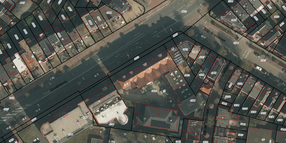 Het perceel waarop Graafseweg 33-A-15 staat heeft een oppervlakte van 2410 m². Dit is een zeer groot perceel. De perceeloppervlakte wordt geregistreerd door het Kadaster. Gedetailleerde informatie over de maten van dit perceel kunt u vinden in het rapport Kadastrale kaart met maatvoering van Graafseweg 33-A-15.