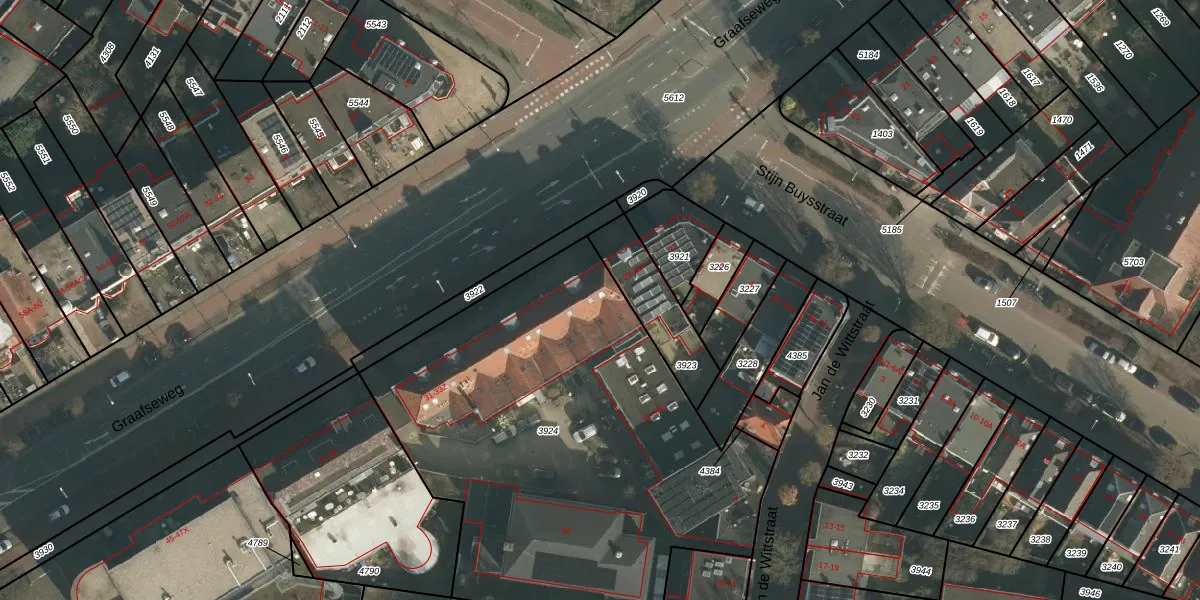 Het perceel waarop Graafseweg 33-A-21 staat heeft een oppervlakte van 2410 m². Dit is een zeer groot perceel. De perceeloppervlakte wordt geregistreerd door het Kadaster. Gedetailleerde informatie over de maten van dit perceel kunt u vinden in het rapport Kadastrale kaart met maatvoering van Graafseweg 33-A-21.