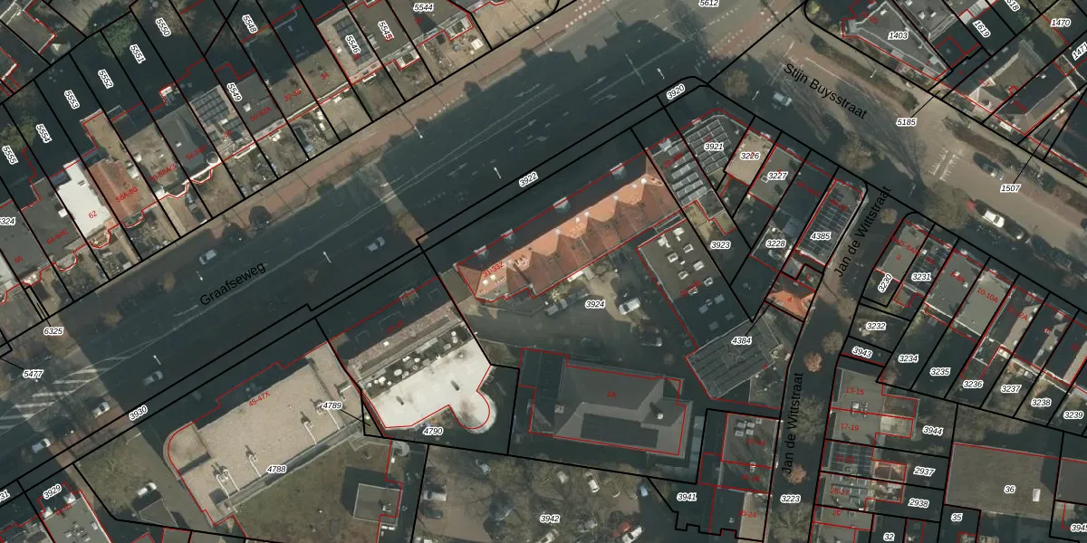Het perceel waarop Graafseweg 33-A-29 staat heeft een oppervlakte van 2410 m². Dit is een zeer groot perceel. De perceeloppervlakte wordt geregistreerd door het Kadaster. Gedetailleerde informatie over de maten van dit perceel kunt u vinden in het rapport Kadastrale kaart met maatvoering van Graafseweg 33-A-29.