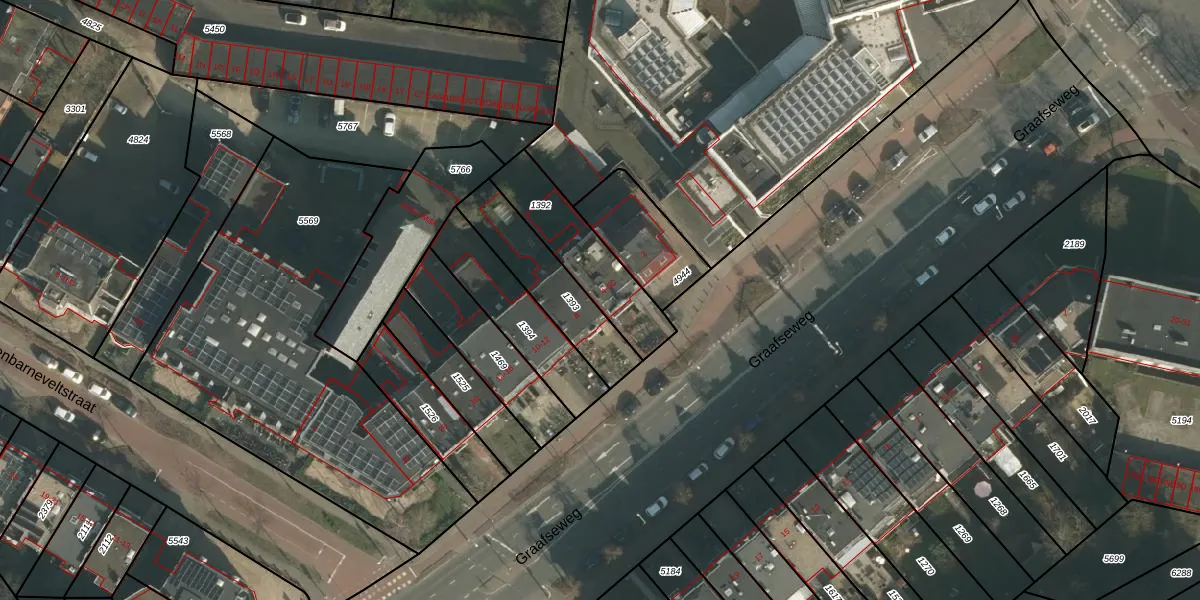 Het perceel waarop Graafseweg 6-B staat heeft een oppervlakte van 300 m². Dit is een groot perceel. De perceeloppervlakte wordt geregistreerd door het Kadaster. Gedetailleerde informatie over de maten van dit perceel kunt u vinden in het rapport Kadastrale kaart met maatvoering van Graafseweg 6-B.
