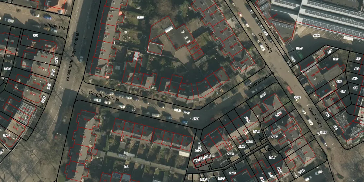 Het perceel waarop Gregoriusstraat 10 staat heeft een oppervlakte van 6003 m². Dit is een zeer groot perceel. De perceeloppervlakte wordt geregistreerd door het Kadaster. Gedetailleerde informatie over de maten van dit perceel kunt u vinden in het rapport Kadastrale kaart met maatvoering van Gregoriusstraat 10.