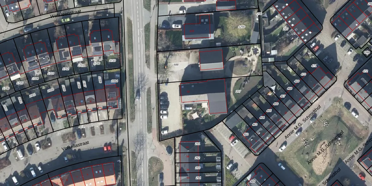 Gebruik de zoekbalk of klik op een perceel voor informatie over de adressen binnen dit perceel.