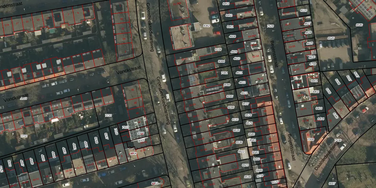 Het perceel waarop Groesbeeksedwarsweg 49 staat heeft een oppervlakte van 207 m². Dit is een middelgroot perceel. De perceeloppervlakte wordt geregistreerd door het Kadaster. Gedetailleerde informatie over de maten van dit perceel kunt u vinden in het rapport Kadastrale kaart met maatvoering van Groesbeeksedwarsweg 49.