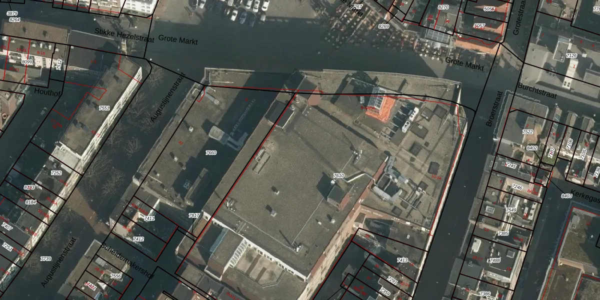 Het perceel waarop Grote Markt 4-A-12 staat heeft een oppervlakte van 4561 m². Dit is een zeer groot perceel. De perceeloppervlakte wordt geregistreerd door het Kadaster. Gedetailleerde informatie over de maten van dit perceel kunt u vinden in het rapport Kadastrale kaart met maatvoering van Grote Markt 4-A-12.