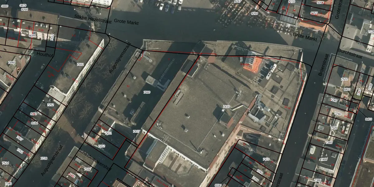 Het perceel waarop Grote Markt 4-A-25 staat heeft een oppervlakte van 4561 m². Dit is een zeer groot perceel. De perceeloppervlakte wordt geregistreerd door het Kadaster. Gedetailleerde informatie over de maten van dit perceel kunt u vinden in het rapport Kadastrale kaart met maatvoering van Grote Markt 4-A-25.