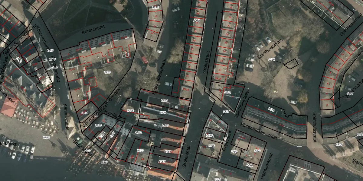 Grotestraat 19 is gelegen op kadastraal perceel NMG00C8248. Deze kadastrale aanduiding is uniek en wordt gebruikt door het Kadaster om eigendomsrechten en andere zakelijke rechten vast te leggen. Het perceel maakt onderdeel uit van de kadastrale gemeente Nijmegen.