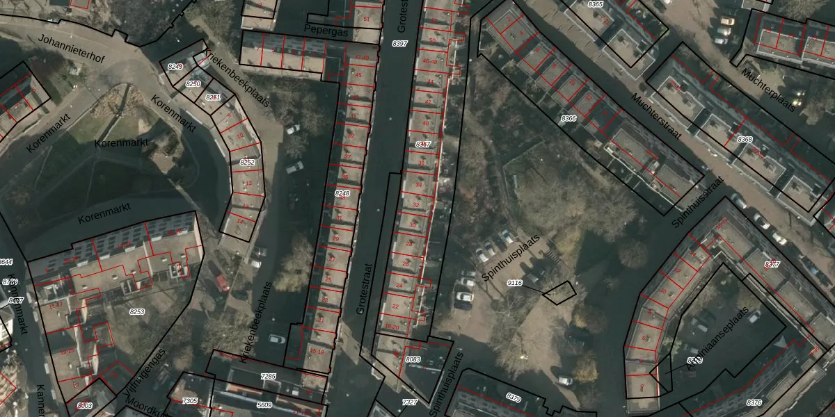 Grotestraat 32 is gelegen op kadastraal perceel NMG00C8367. Deze kadastrale aanduiding is uniek en wordt gebruikt door het Kadaster om eigendomsrechten en andere zakelijke rechten vast te leggen. Het perceel maakt onderdeel uit van de kadastrale gemeente Nijmegen.