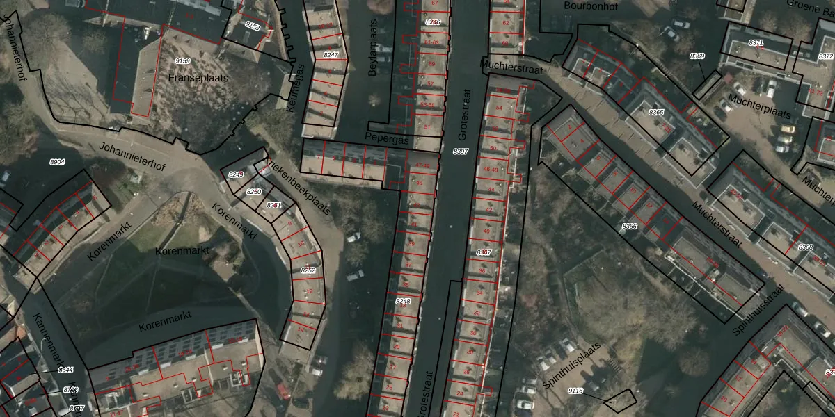Grotestraat 43 is gelegen op kadastraal perceel NMG00C8248. Deze kadastrale aanduiding is uniek en wordt gebruikt door het Kadaster om eigendomsrechten en andere zakelijke rechten vast te leggen. Het perceel maakt onderdeel uit van de kadastrale gemeente Nijmegen.