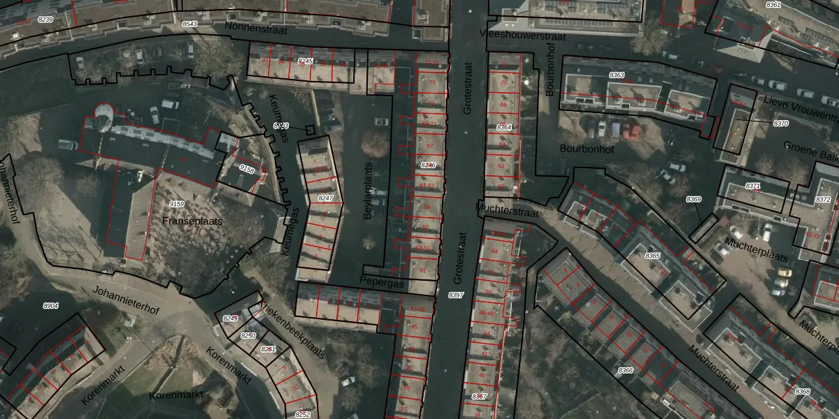 Grotestraat 59 is gelegen op kadastraal perceel NMG00C8246. Deze kadastrale aanduiding is uniek en wordt gebruikt door het Kadaster om eigendomsrechten en andere zakelijke rechten vast te leggen. Het perceel maakt onderdeel uit van de kadastrale gemeente Nijmegen.