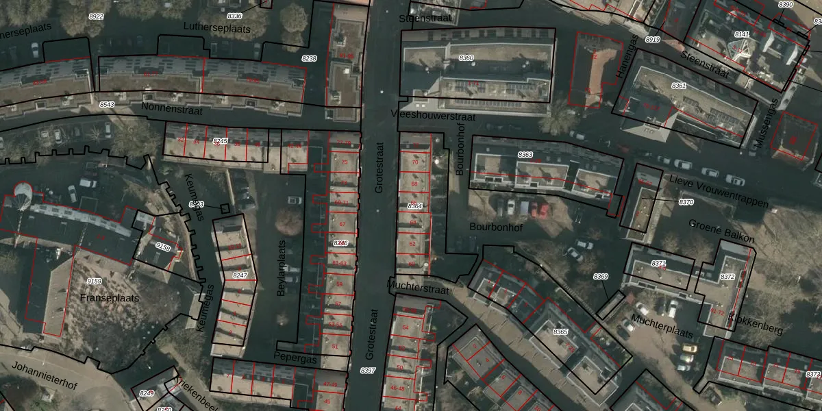 Grotestraat 66 is gelegen op kadastraal perceel NMG00C8364. Deze kadastrale aanduiding is uniek en wordt gebruikt door het Kadaster om eigendomsrechten en andere zakelijke rechten vast te leggen. Het perceel maakt onderdeel uit van de kadastrale gemeente Nijmegen.