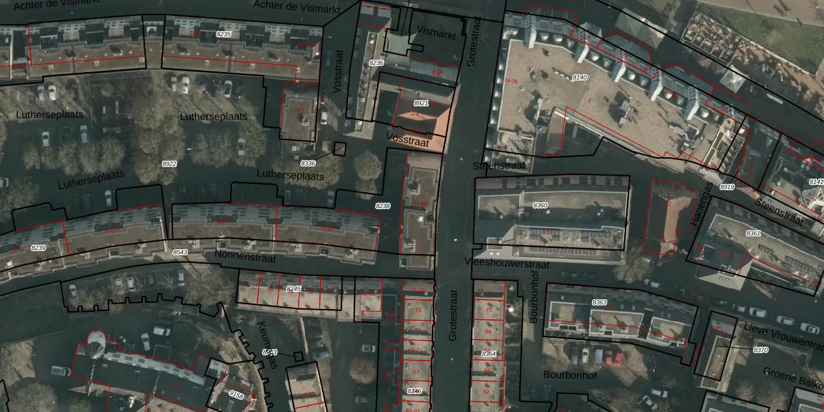 Grotestraat 91 is gelegen op kadastraal perceel NMG00C8238. Deze kadastrale aanduiding is uniek en wordt gebruikt door het Kadaster om eigendomsrechten en andere zakelijke rechten vast te leggen. Het perceel maakt onderdeel uit van de kadastrale gemeente Nijmegen.