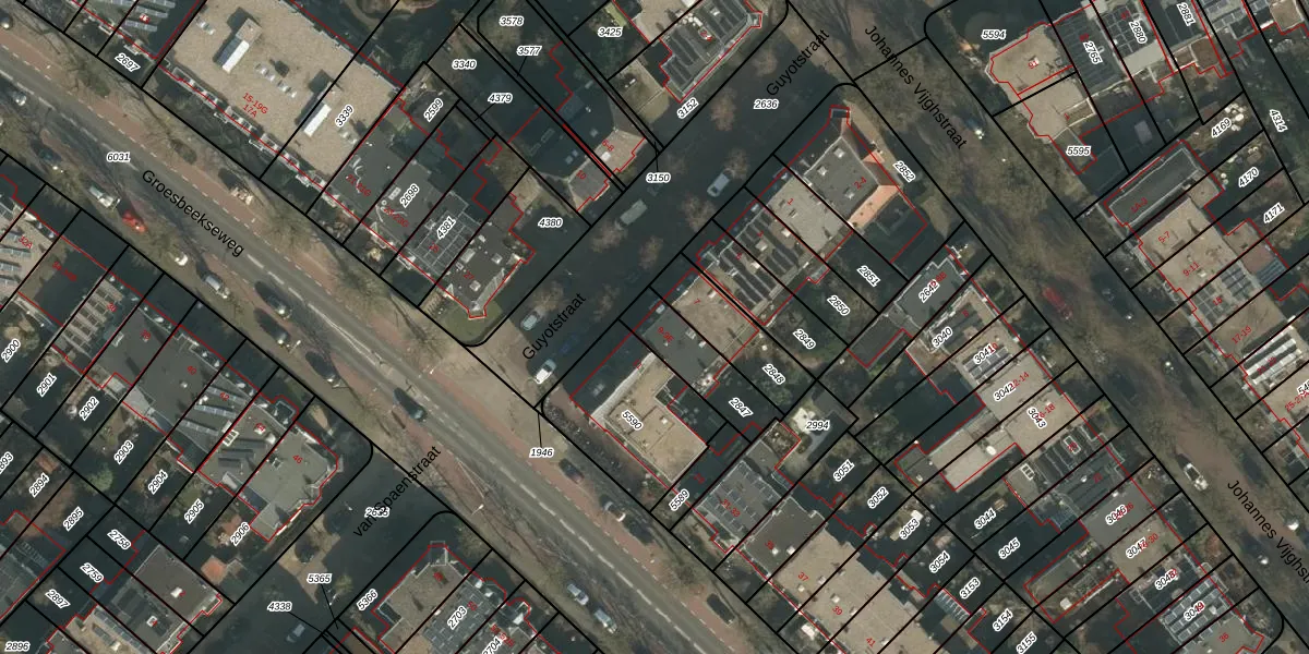 Guyotstraat 9 is gelegen op kadastraal perceel NMG00B2847. Deze kadastrale aanduiding is uniek en wordt gebruikt door het Kadaster om eigendomsrechten en andere zakelijke rechten vast te leggen. Het perceel maakt onderdeel uit van de kadastrale gemeente Nijmegen.