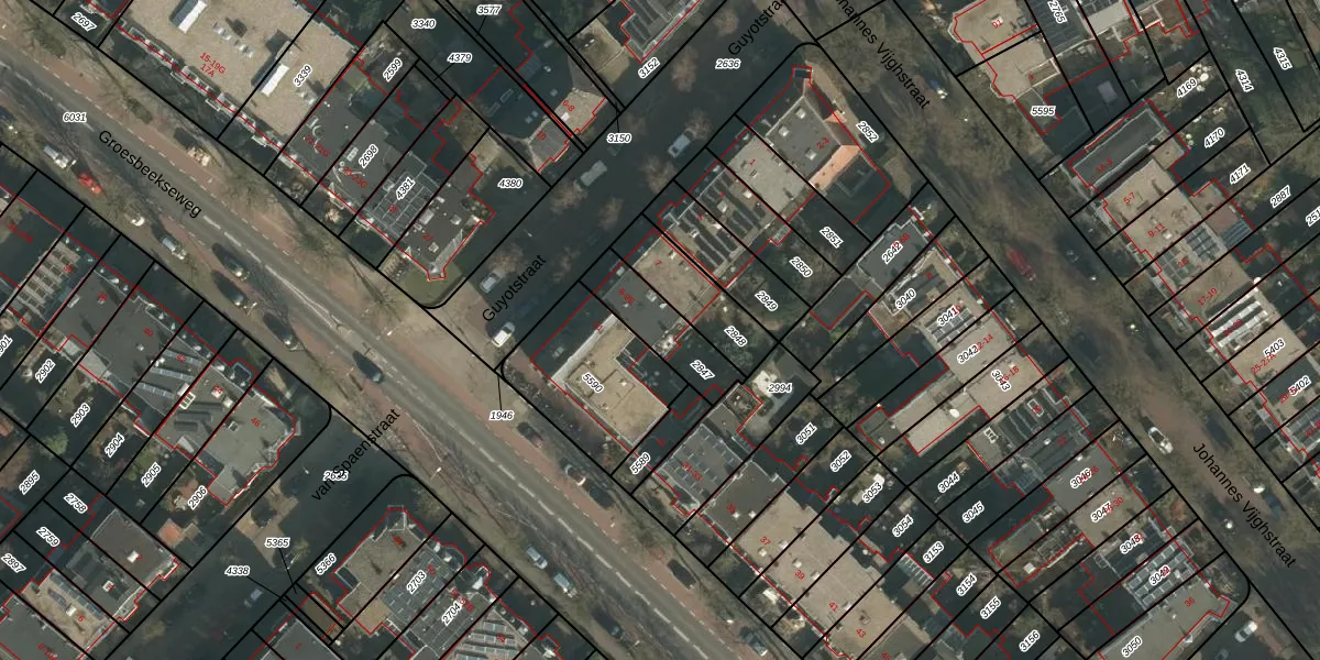 Het perceel waarop Guyotstraat 9-B staat heeft een oppervlakte van 187 m². Dit is een middelgroot perceel. De perceeloppervlakte wordt geregistreerd door het Kadaster. Gedetailleerde informatie over de maten van dit perceel kunt u vinden in het rapport Kadastrale kaart met maatvoering van Guyotstraat 9-B.