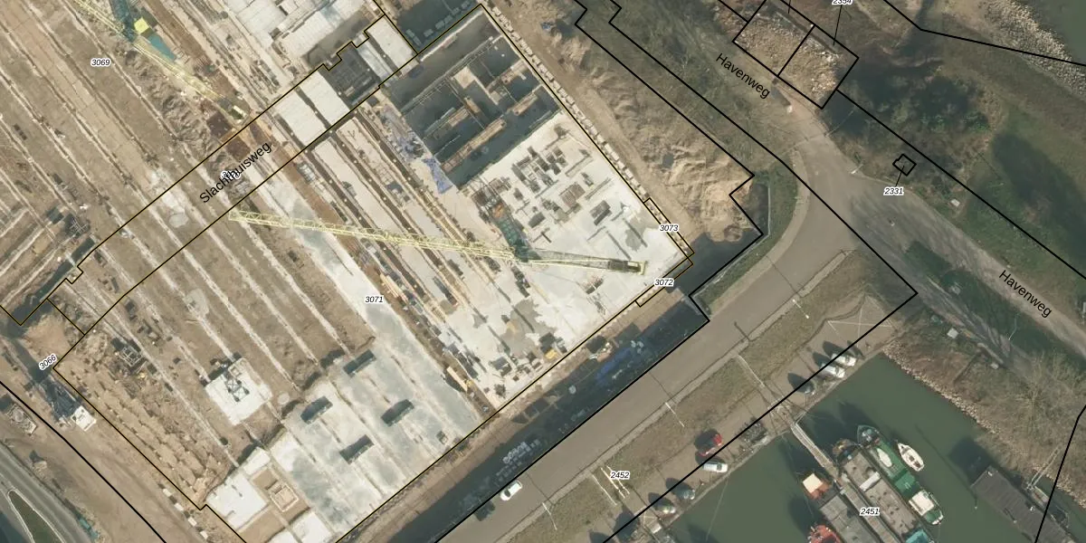 Het perceel waarop Havenweg 112 staat heeft een oppervlakte van 5978 m². Dit is een zeer groot perceel. De perceeloppervlakte wordt geregistreerd door het Kadaster. Gedetailleerde informatie over de maten van dit perceel kunt u vinden in het rapport Kadastrale kaart met maatvoering van Havenweg 112.