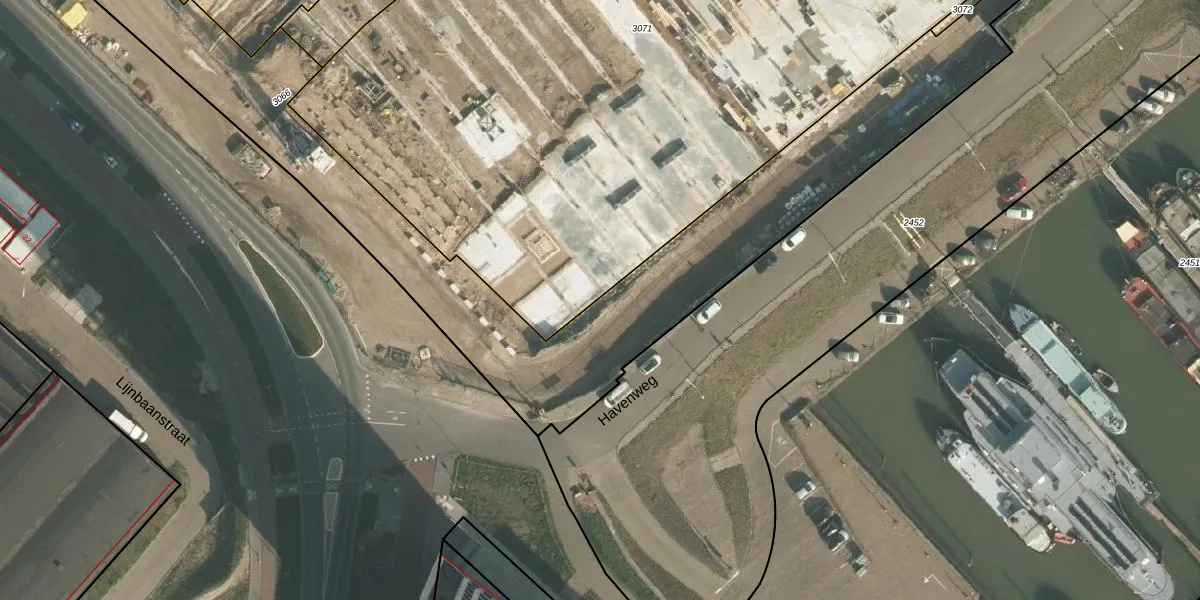 Het perceel waarop Havenweg 126 staat heeft een oppervlakte van 9730 m². Dit is een zeer groot perceel. De perceeloppervlakte wordt geregistreerd door het Kadaster. Gedetailleerde informatie over de maten van dit perceel kunt u vinden in het rapport Kadastrale kaart met maatvoering van Havenweg 126.