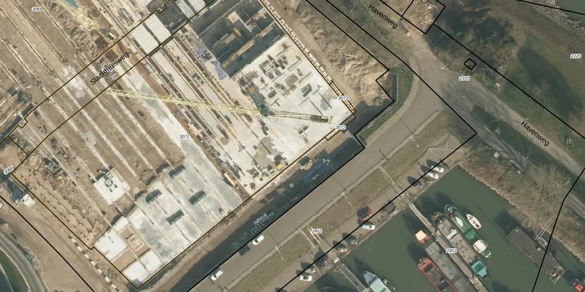 Het perceel waarop Havenweg 44 staat heeft een oppervlakte van 5978 m². Dit is een zeer groot perceel. De perceeloppervlakte wordt geregistreerd door het Kadaster. Gedetailleerde informatie over de maten van dit perceel kunt u vinden in het rapport Kadastrale kaart met maatvoering van Havenweg 44.