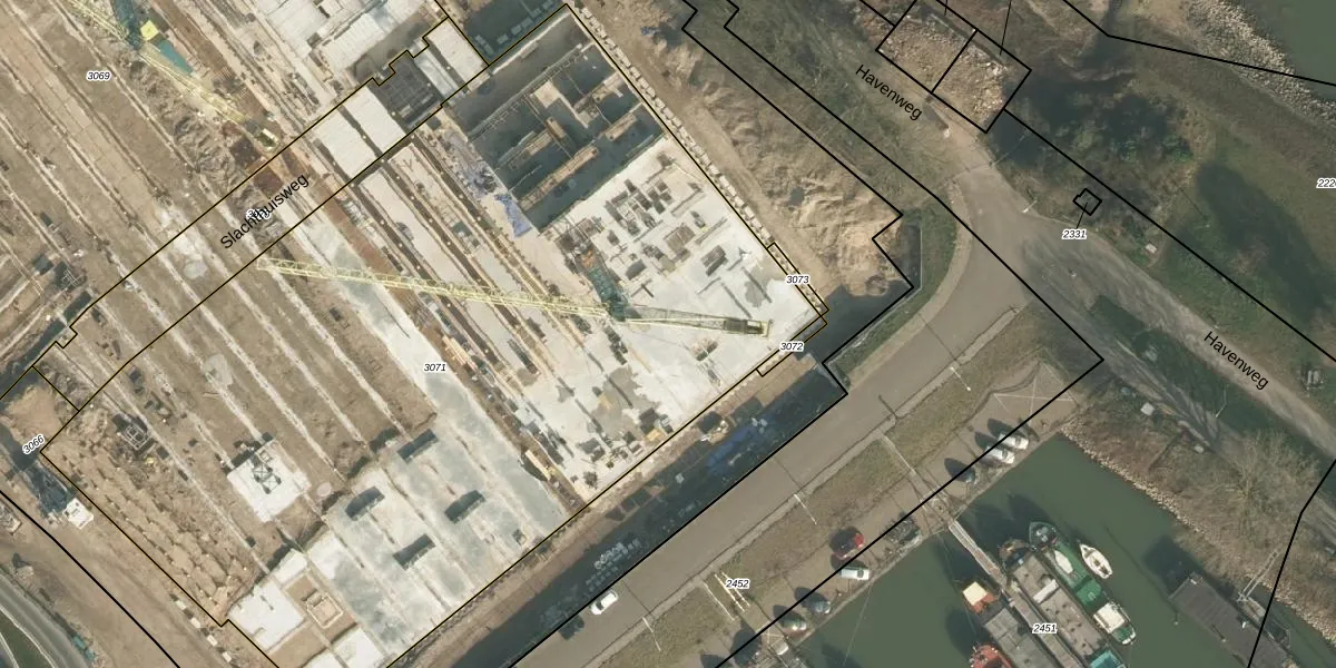 Het perceel waarop Havenweg 84 staat heeft een oppervlakte van 5978 m². Dit is een zeer groot perceel. De perceeloppervlakte wordt geregistreerd door het Kadaster. Gedetailleerde informatie over de maten van dit perceel kunt u vinden in het rapport Kadastrale kaart met maatvoering van Havenweg 84.