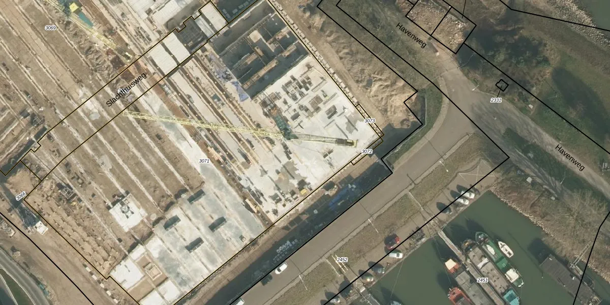 Het perceel waarop Havenweg 88 staat heeft een oppervlakte van 5978 m². Dit is een zeer groot perceel. De perceeloppervlakte wordt geregistreerd door het Kadaster. Gedetailleerde informatie over de maten van dit perceel kunt u vinden in het rapport Kadastrale kaart met maatvoering van Havenweg 88.