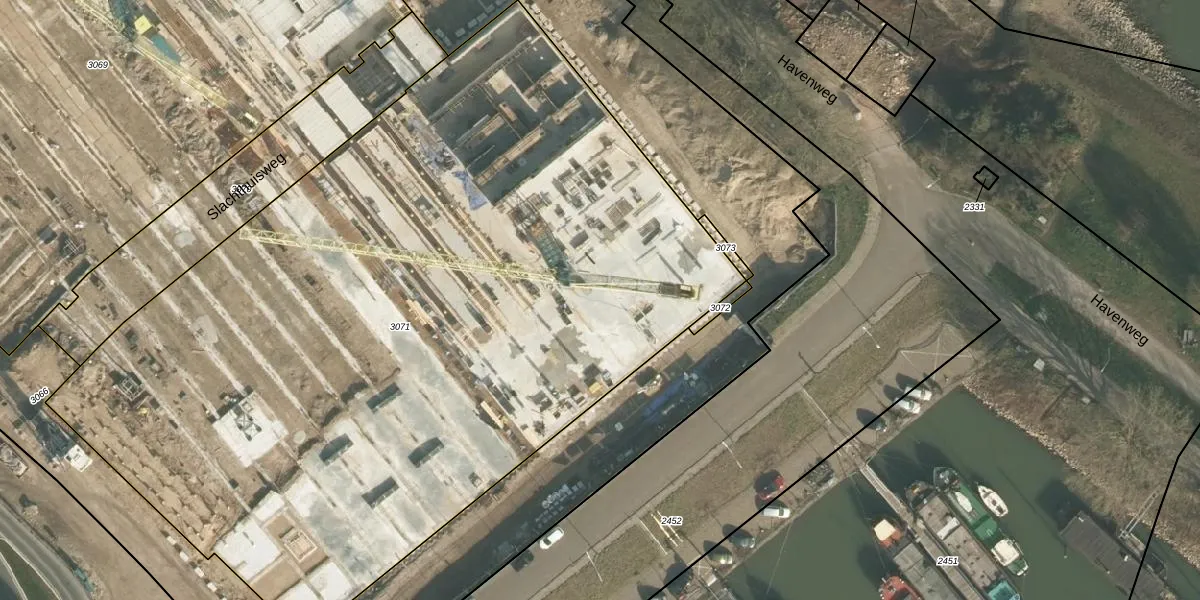 Het perceel waarop Havenweg 98 staat heeft een oppervlakte van 5978 m². Dit is een zeer groot perceel. De perceeloppervlakte wordt geregistreerd door het Kadaster. Gedetailleerde informatie over de maten van dit perceel kunt u vinden in het rapport Kadastrale kaart met maatvoering van Havenweg 98.