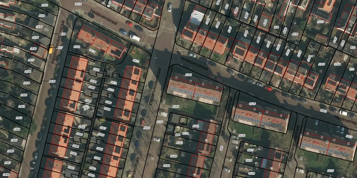 Het perceel waarop Heidevenstraat 81 staat heeft een oppervlakte van 465 m². Dit is een groot perceel. De perceeloppervlakte wordt geregistreerd door het Kadaster. Gedetailleerde informatie over de maten van dit perceel kunt u vinden in het rapport Kadastrale kaart met maatvoering van Heidevenstraat 81.