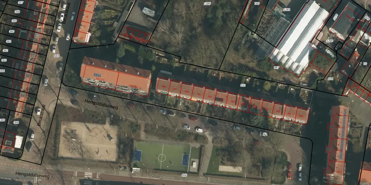 Hengstdalseweg 189 is gelegen op kadastraal perceel HTT02K632. Deze kadastrale aanduiding is uniek en wordt gebruikt door het Kadaster om eigendomsrechten en andere zakelijke rechten vast te leggen. Het perceel maakt onderdeel uit van de kadastrale gemeente Hatert.