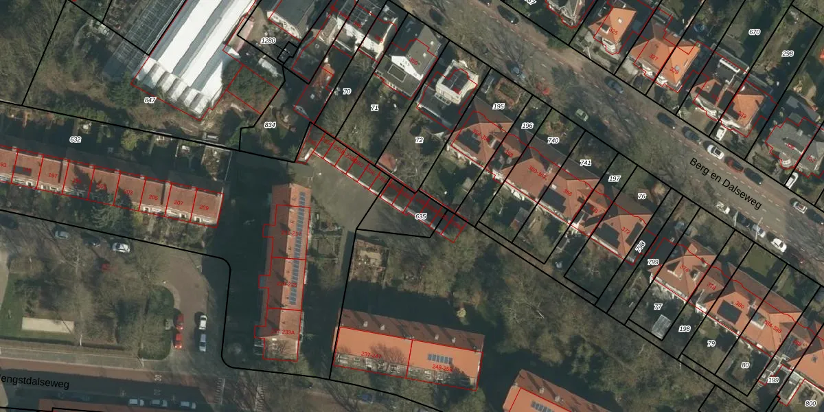 Het perceel waarop het adres ligt is HTT02-K-635. De afkorting 'HTT02' staat voor kadastrale gemeente Hatert. De gemiddelde perceelgrootte in Hatert is 909,05 m². Dit perceel is kleiner: de perceeloppervlakte bedraagt 190 m². De grootste perceeloppervlakte in de kadastrale gemeente is 66,9 ha. De kleinste oppervlakte bedraagt 0 m². Op het perceel zijn 5 adressen aanwezig. In de Basisregistratie Kadaster (BRK) werden de grenzen van het perceel geregistreerd op 15-10-2003.